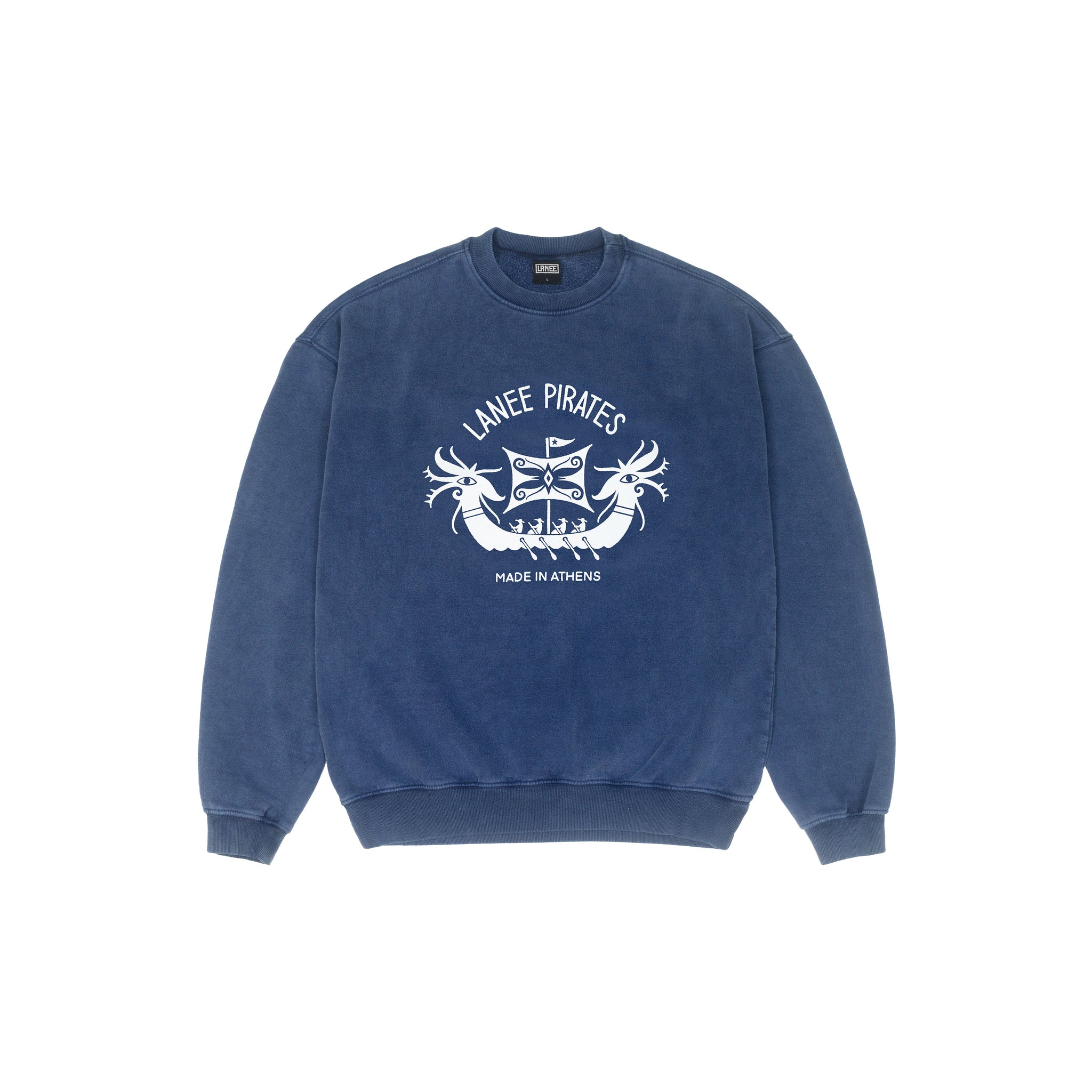 Crafted from a heavyweight 310g/m² fabric, this textile blend is made of 80% cotton and 20% polyester, offering warmth and comfort with a soft fleece lining on the inside. This washed crewneck has a relaxed fit with ribbed trims and features a graphic logo print.