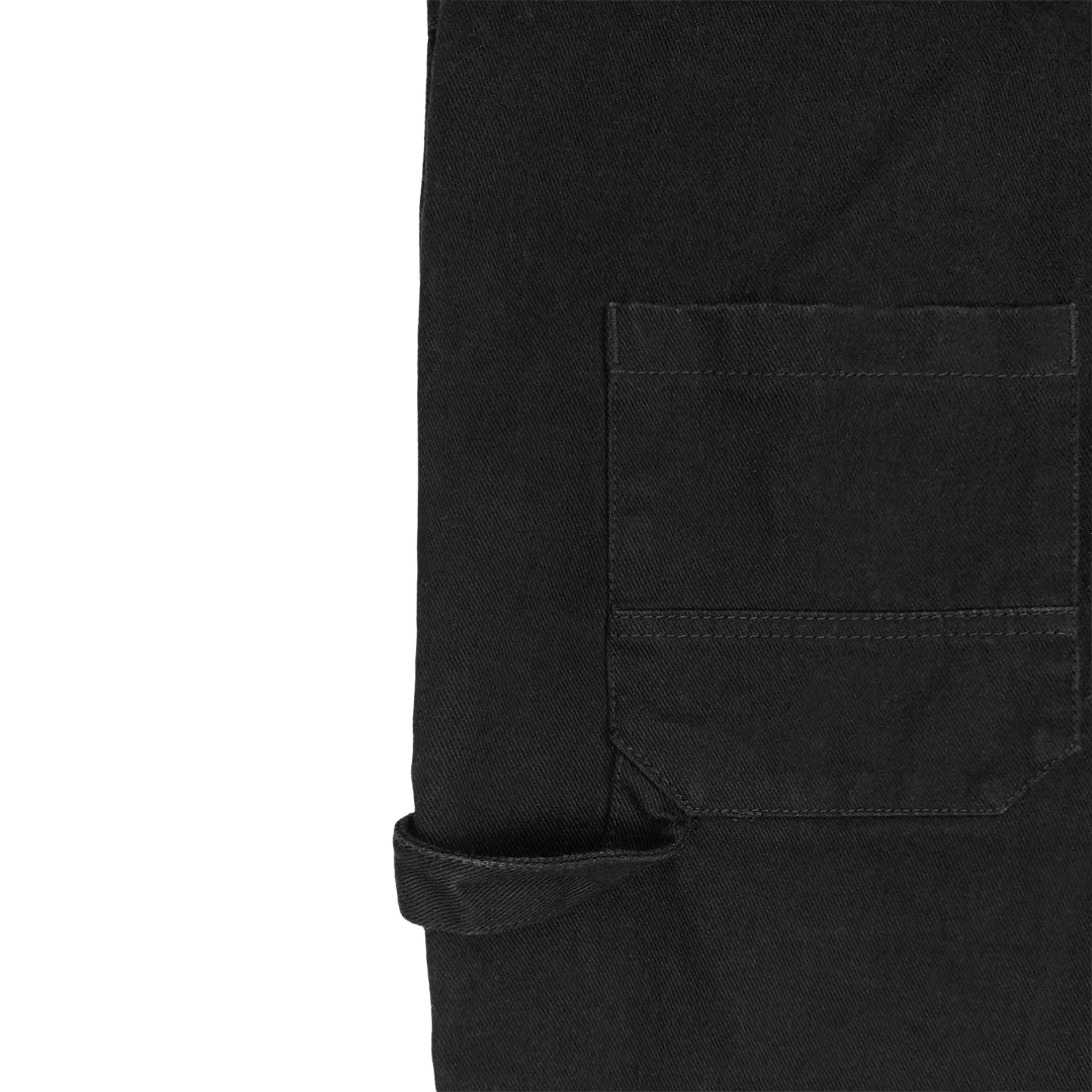 Crafted from 100% cotton non-stretch denim, this loose-fit overall offers durability and a timeless workwear-inspired look. The relaxed cut provides comfort and ease of movement, while two woven labels on the chest pocket and back pocket add a distinctive touch.